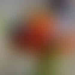 オレンジのスプレーバラとピンクのスプレーカーネーションの中にグリーンや紫色が入った明るい華やかな花束になりました。