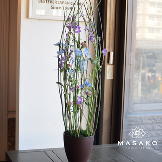 高く上昇する円錐形は、花と線植物素材の動きなど表現するのが難しかったです。