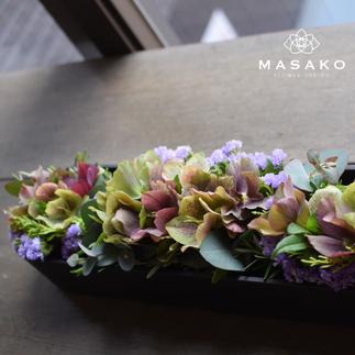 NFD資格検定、国家資格フラワー装飾技能検定、指導校で、今回NFD資格検定2級レッスン「構造的」「並行ー植生的」を受講なさいました、まいさんの作品をご紹介いたします。