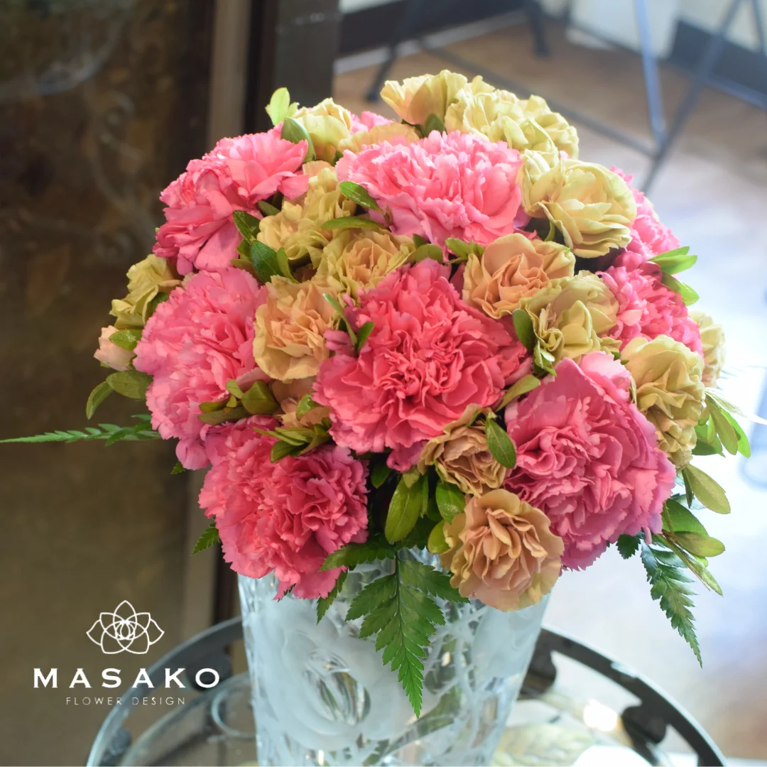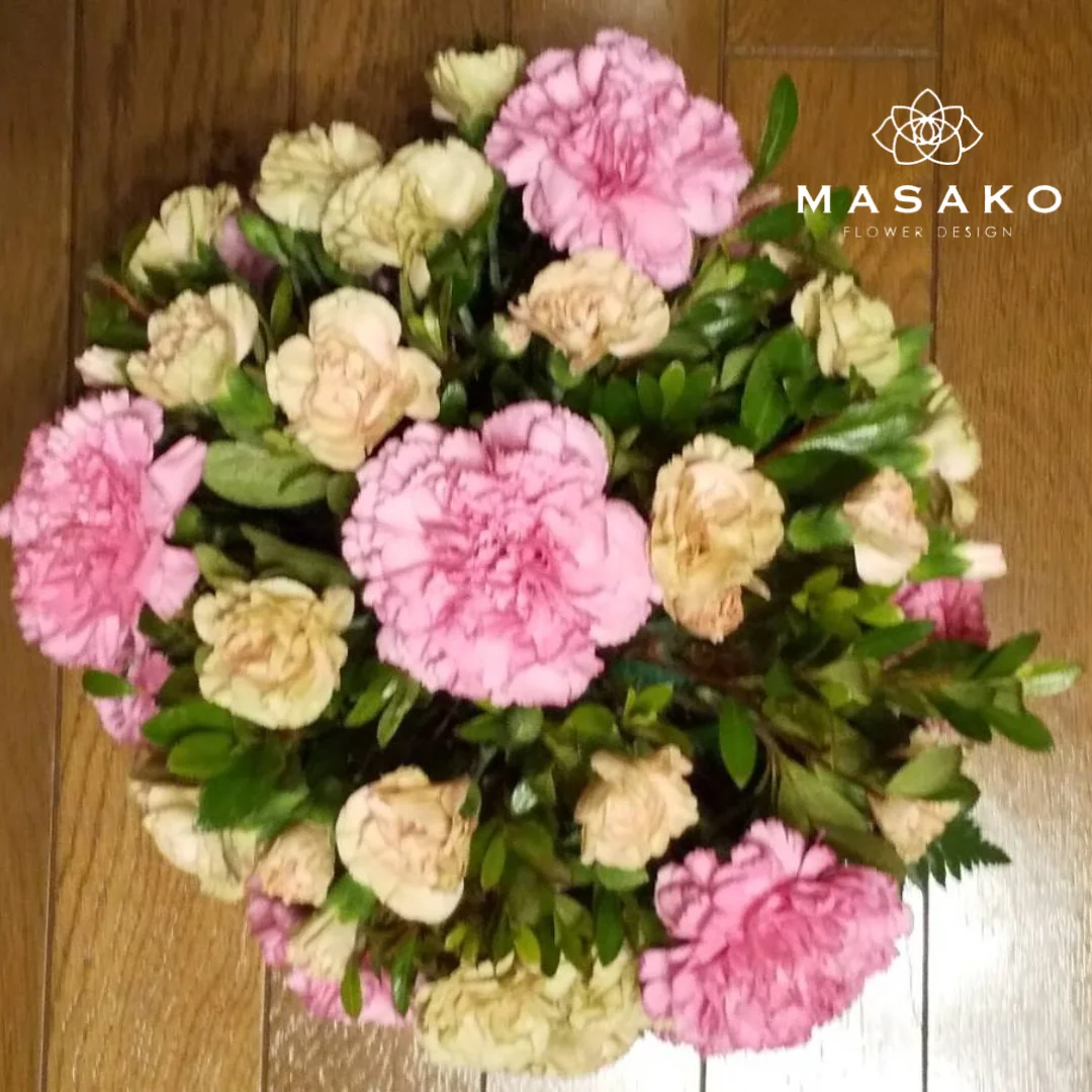 いつも1番大変なのが、45度に配置するカーネーションが、上手くいかず、挿し直すのでもっとスムーズに出来る様、clearしていきたいです。